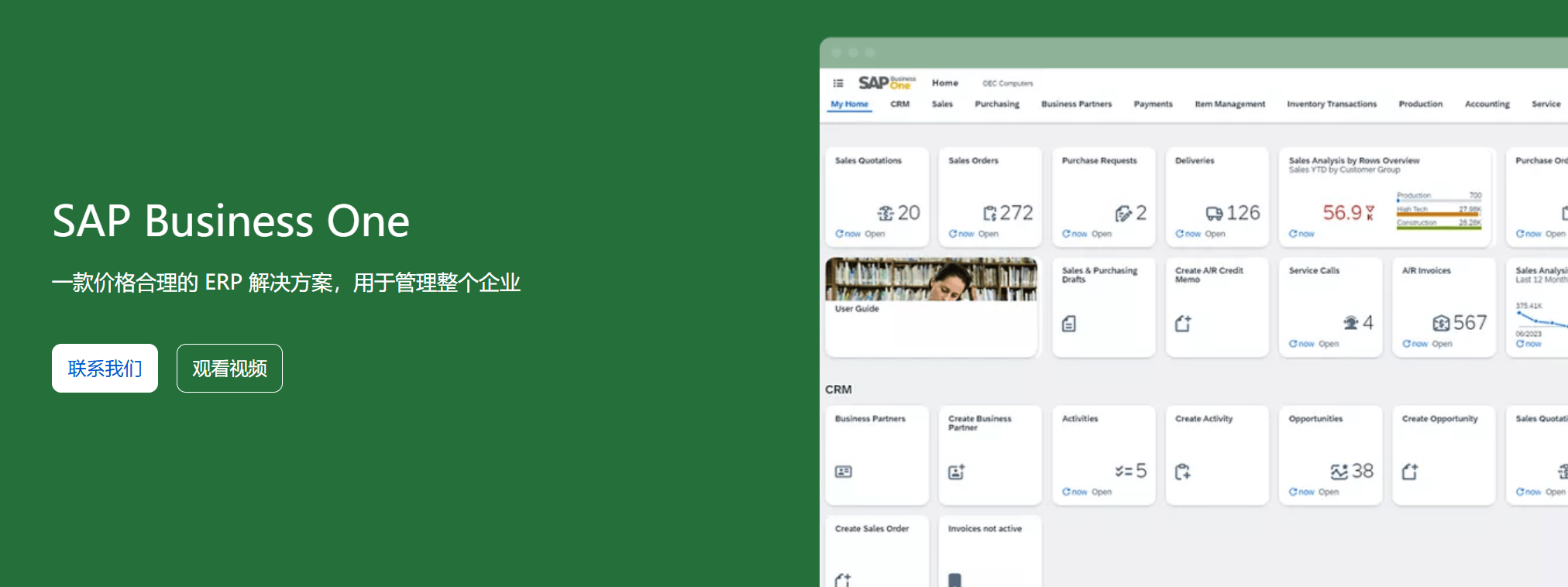 SAP作为欧洲老牌ERP厂商,其Business One版本专为跨国经营的中型企业设计: