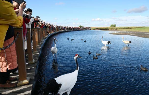 欢迎来到扎龙生态旅游区——世界大湿地,中国鹤家乡!作为世界闻名的丹顶鹤繁育栖息地,这里不仅有“晴空一鹤排云上,便引诗情到碧霄”的生态美景,更是人与自然和谐共生的生动写照。双节期间,我们全面升级“鹤仙子”游船互动体验,准备多项妙趣横生的互动游戏,让大家既能沉浸式感受湿地生态之美,又能深入了解野生动物保护的重要意义,在休闲游览中收获生态知识。