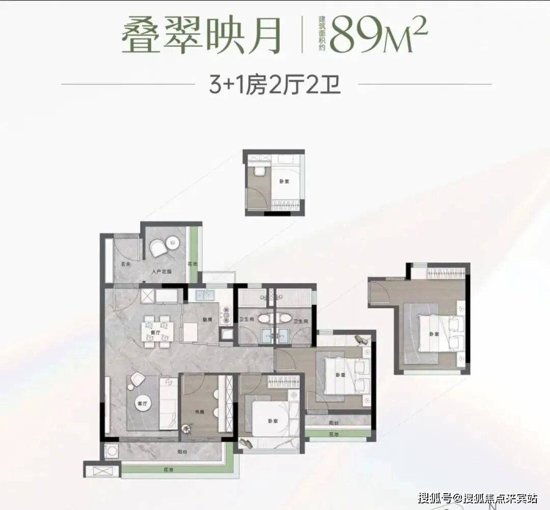 在售建面约78-89平三至四房,使用率最高超100%(包含赠送面积),碾压市面上超9成新盘!