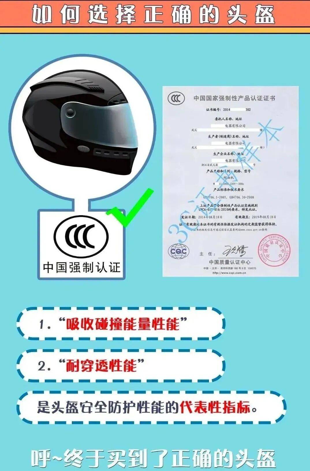 公安部交管局在2019年9月10日发布的《知识帖:正确使用安全头盔有多重要》中曾明确表示,摩托车乘员头盔的质量需符合国家标准及3C认证(3C认证全称为“中国强制性产品认证”)。