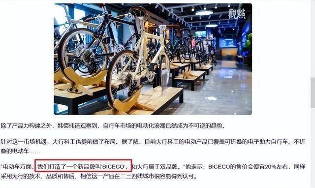 第一个是电动化,在欧洲,带电的自行车卖得已经比不带电的好了,所以大行也早早地开始做电动车,甚至还推出了一个叫BICECO的新品牌。