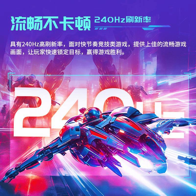 超高刷新率:这货可是个真正的“电竞神器”,刷新率直接拉到240Hz,流畅度不是一般的高!想象一下,游戏里的角色一跑起来,画面就像电影一样流畅,那种感觉,简直就像开挂了一样!